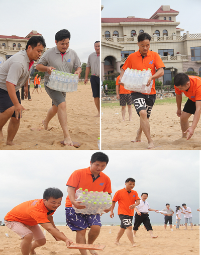 摸石頭過河,需要兩名隊(duì)員協(xié)作配合,一人抱重物,另一人將隊(duì)友腳下的木板依次往前方更替,直至到達(dá)終點(diǎn),最終用時少的一方獲勝。團(tuán)隊(duì)的前進(jìn)離不開每一個銷售人員的參與,角色可能稍微不同,你跑新市場我守老客戶,你負(fù)重前行時,我就為你鋪路,我們是一個團(tuán)隊(duì),配合默契,共同做好市場。一組全力以赴之后,下一組接力,繼續(xù)前進(jìn),肩上的責(zé)任永不放下,腳下的路程越來越短,離目標(biāo)、離成功越來越近。