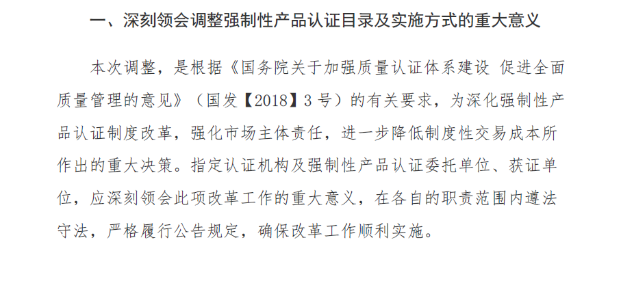 2018年6月11日,國家市場監(jiān)督管理總局、國家認證認可監(jiān)督管理委員會發(fā)布2018年第11號公告,調整部分強制性產品認證目錄及實施方式。